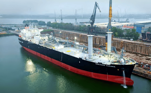 2024年11月20日,风力辅助推进领域领军企业挪世航力(Norsepower)与饭野海运(IINO Lines)携手知名可持续聚烯烃解决方案供应商Borealis,为其承租的超大型双燃料液化气体运输船“OCEANUS AURORA”轮完成2桅旋筒风帆安装工作。该船装备的2桅旋筒风帆高20米、直径4米,专为满足其净空高度限制而设计。